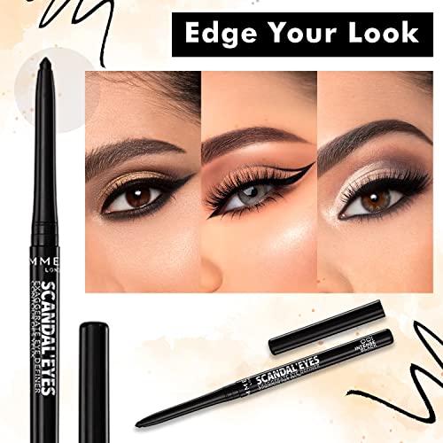 Rimmel London Scandaleyes Exaggerate Eye Definer, 001 Intense Black, 0.35g creates bold, intense lines. Available in waterproof and retractable variations for precision.