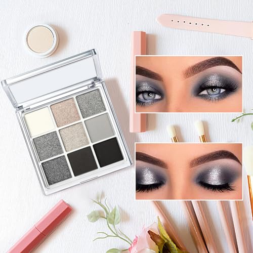 Create mesmerising eye looks with the Shimmer Glitter Sparkly Eyeshadow Palette – 9 Colours Shimmer Eyeshadow Palette for Women with 3 Pack Brushes (Smokey). This versatile palette offers a collection of richly pigmented, shimmering shades that blend effortlessly. Enhance your makeup with the included professional-grade brushes, ensuring a flawless application every time. The smokey colour selection is perfect for creating dramatic, sultry eyes or subtle, everyday glamour.