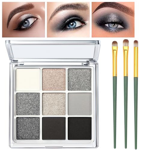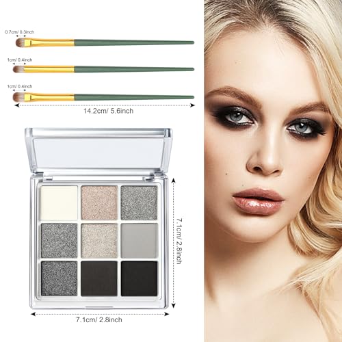 Shimmer Glitter Sparkly Eyeshadow Palette – 9 Colours Shimmer Eyeshadow Palette for Women with 3 Pack Brushes (Smokey)
