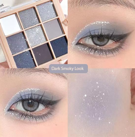 Smokey Eyeshadow Palette, Black Smokey Eyeshadow Palette Makeup, Smoky Eyes Make-up, 9 neutral eyeshadows, Highly Pigmented Blendable Cool toned colours Eyeshadow Palette for Girls and Women