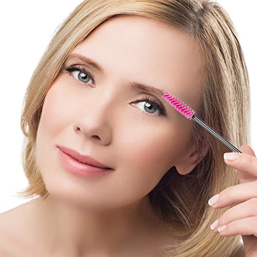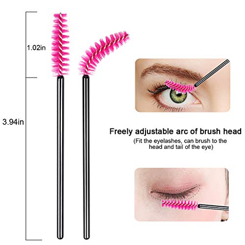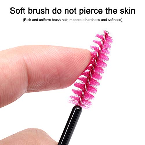 SWKJ 60 PCS Disposable Eyelash Brushes, Eyebrow Spoolies, Mascara Wands Applicator Lash Brushes Castor Oil Brush Cosmetic Makeup Tools (Rose Red)