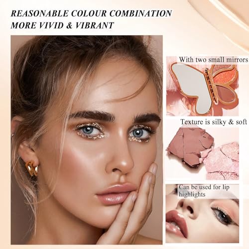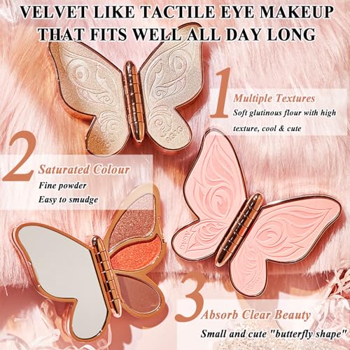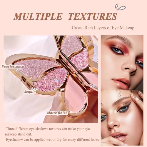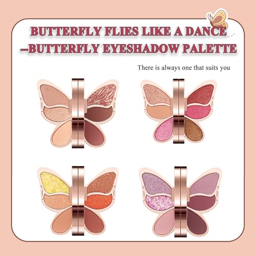 TBeautfave Butterfly Nude Eyeshadow Palette,Blendable Buildable Make-up Palettes Long Wearing Waterproof Eye Shadow Pallets for Women, Pearlescent Sequin Sparkling Matte Eye Shadows Palette-01