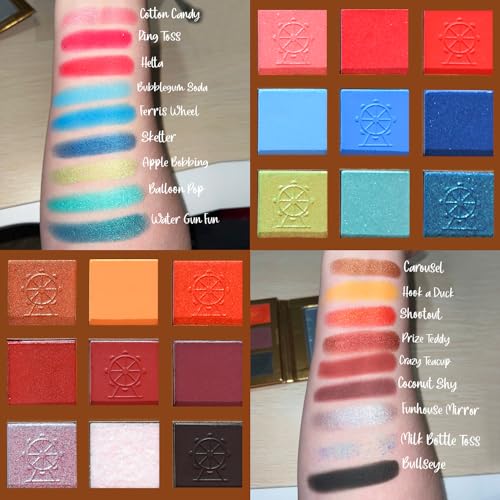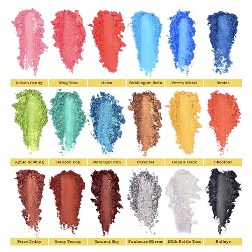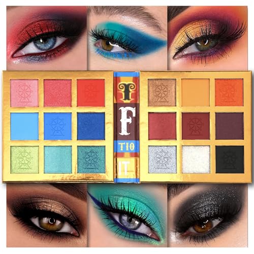TINTARK 18 Color Funfair Eyeshadow Palette, Carnival Party Eyeshadows, Gold Slivery Black White Yellow Orange Brown Bronzer Red Blue Purple Green Eye Shadow Palettes, Glitter Matte Shimmer