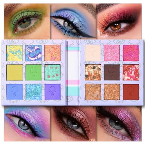 TINTARK Eyes Cream Eyeshadow Palette Makeup, Blue Purple Green Pink Brown Eye Shadow Pallets for Cute Daily Eye Make-up, 18 Shades Glitter Shimmer Matte Eyeshadow with Mirror, Talc Free is a versatile and vibrant eyeshadow palette perfect for creating various looks. With 18 stunning shades ranging from blues, purples, greens, pinks, to browns, this palette features a mix of glitter, shimmer, and matte finishes to enhance your beauty. This talc-free formula is gentle on the skin and perfect for daily make-up routines. Includes a built-in mirror for convenience.