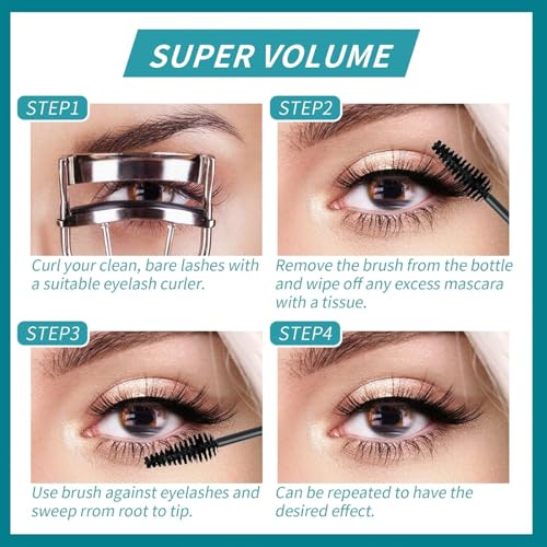 Waterproof Mascara Black, 4D Silk Fiber Eyelash Mascara,Mascara Black Waterproof, Extra Long Lash Mascara and Thick, Long Lasting, Waterproof & Smudge-Proof