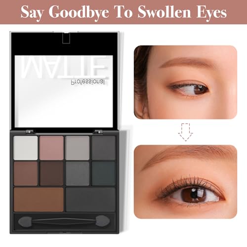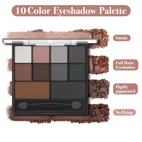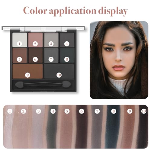 Xumann Smokey Eyeshadow Palette, 10 Eye Shadow Shades Grey Eyeshadow Palette For Women, Wateerproof Dark Eyeshadow Palette Long Lasting Black Eye Shadow