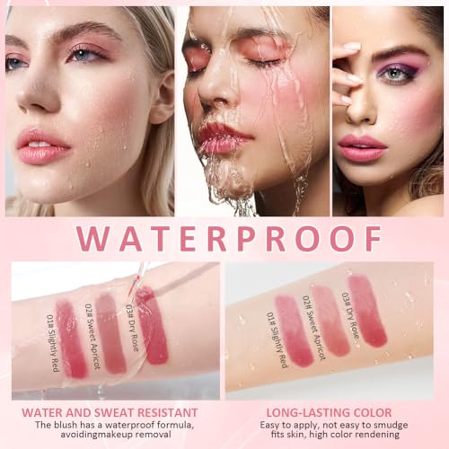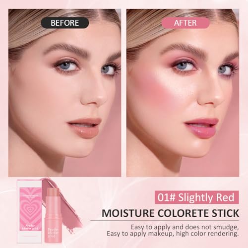3 in 1 Cream Blush Stick, Cream Contour Stick for Cheeks Lips Eyes, Long Lasting Waterproof Lightweight Blusher Stick, Moisturize and Blendable Blushers for Women Girls Cheeks Makeup (#01)