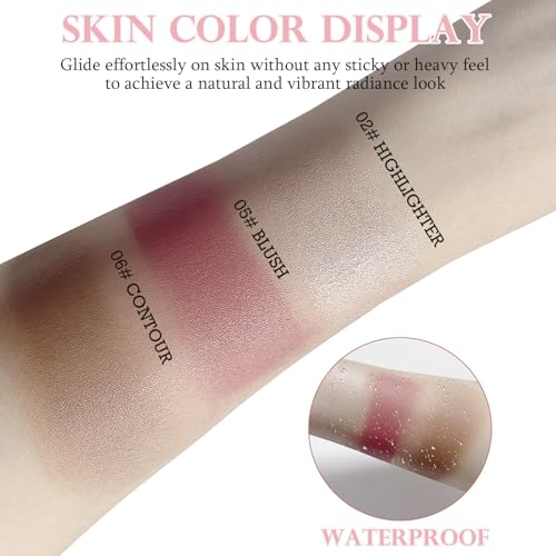 3Pcs Contour Highlighter Blush Sticks with Brush – Cream Contour Bronzer Stick for Cheeks Eyes Lips, Long Lasting Waterproof Smooth Makeup Sticks for All Skin Type Face Makeup