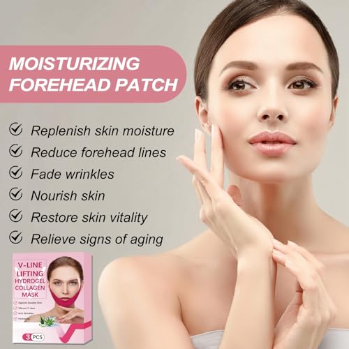 3PCS Face Lift Tape,Face Mask V-Line,Double Chin Reducer,Firming Anti-Wrinkle Mask,Hydrogel Collagen Mask With Aloe,V Lifting Chin Strap for Double Chin,Chin Lift Mask Face Tightening,Face Slimming