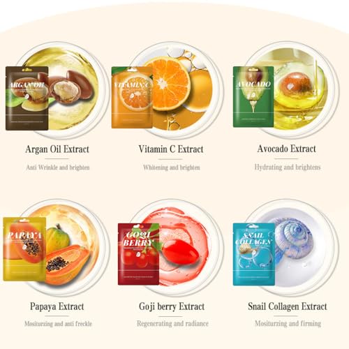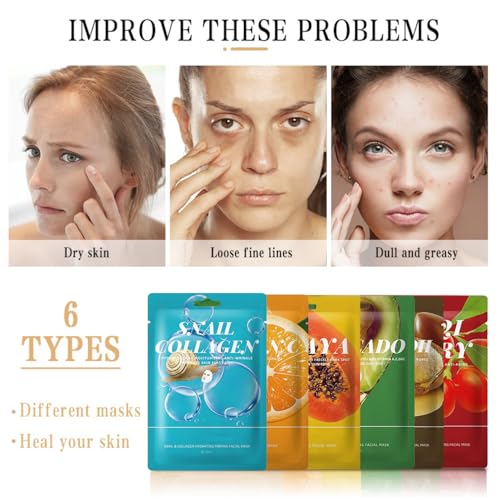 6pcs Face Masks Beauty – Face Mask Set – Fruit Face Masks Skin Care Set – Face Care Hydrating Face Mask – Sheet Mask for Women – Collagen Vitamin C Moisturizing Anti Wrinkle