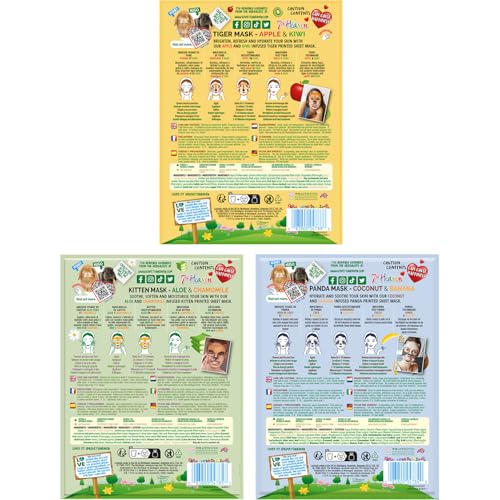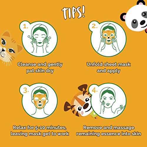 7th Heaven Party Animal Beauty Sheet Face Mask Skincare Set for Kids – Tiger, Kitten & Panda Printed Face Mask Sheet to Soothe, Hydrate & Revitalise Young Skin (Ages 8+)