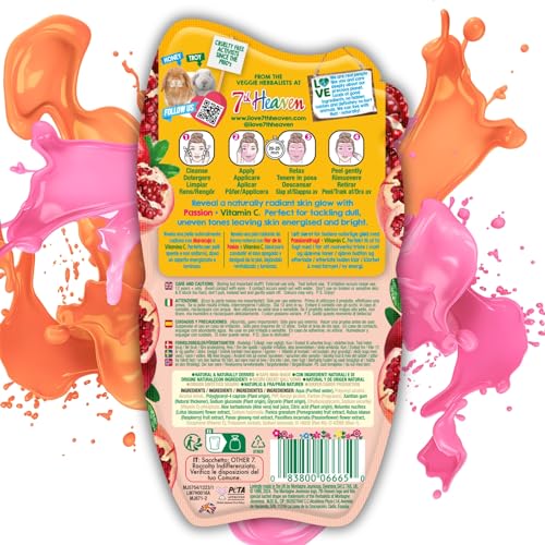 7th Heaven Passion Peel Off Face Mask with Vitamin C, Pack of 6 – Brightening Boost – All Skin Types