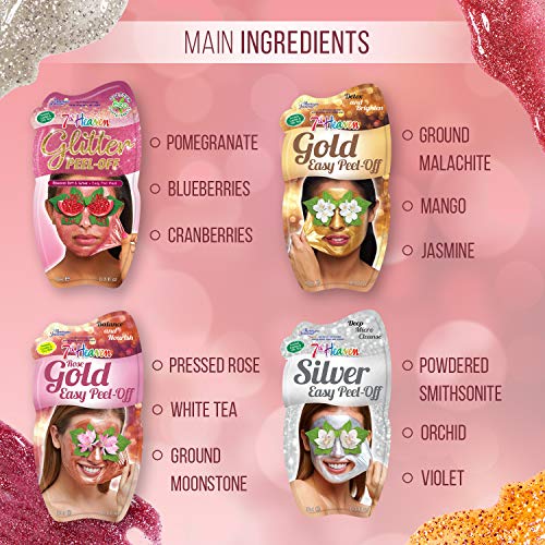 7th Heaven Shine Bright Skincare Bundle – Contains 4 Shimmering Easy Peel-Off Face Masks to Cleanse and Nourish Skin