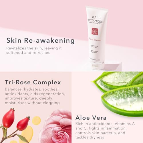Baie Botanique Rose Renew – Organic Non Toxic Face Wash – Rose Water & Aloe Vera – Natural – Vegan – No Irritants – Paraben Free – Sensitive Safe – Vitamin C – Seabuckthorn – 125ml