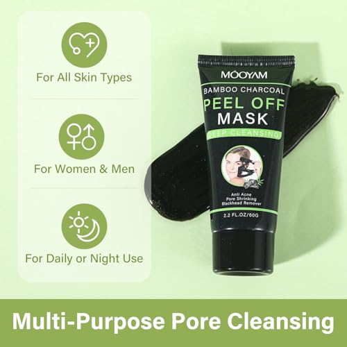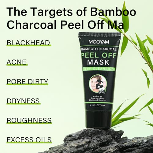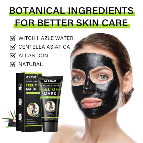 Bamboo Charcoal Peel Off Mask, Blackhead Remover Peel Off Mask Charcoal Face Masks for Deep Cleansing, Blackhead Peel Off Mask for Smooth & Clear Skin Black Peel Off Face Mask Charcoal Face Mask
