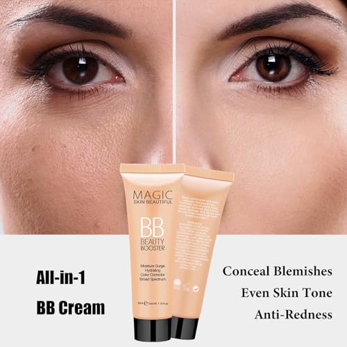 BB Cream Foundation, Even Skin Tone Cream Moisturizing Concealer Makeup Base, Waterproof Lightweight Foundation Anti-Redness Silky Smoothing Long Lasting Foundation (Natural)