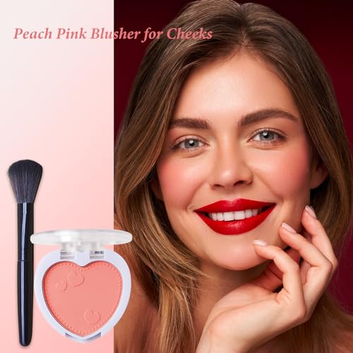 Blushers for Cheeks Make up Blusher, Peach Pink Blush Matte Blush Palette Powder Blushes Korean Makeup, Natural Looking Long-Lasting Sweat-Resistant Blush
