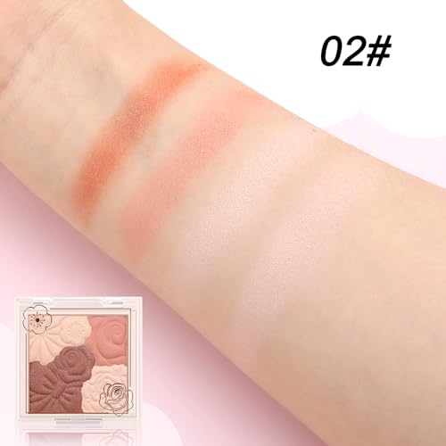 Boobeen Blush Compact for Face, Matte Shimmer Baked Cream Blush Cheeks Powder Palette Buildable Blusher Powder Makeup for a Radiant Long-Lasting Natural Glowing, with Brush