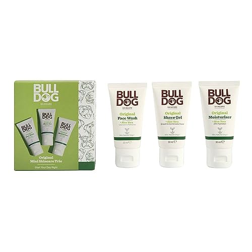 The BULLDOG SKINCARE – Original Mini Skincare Trio Giftset for Men is the ultimate travel size skincare kit. This set includes face wash, moisturiser, and shave gel, all matched to tackle daily skincare needs while on the go.