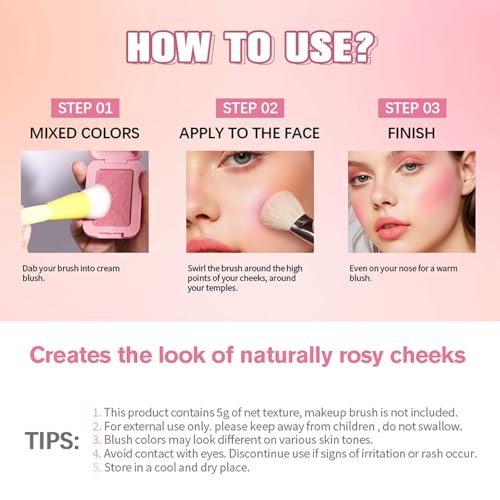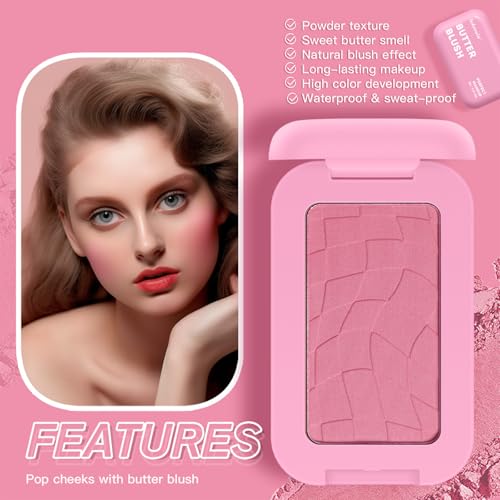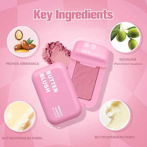 Butter Powder Blush, Blushers for Cheeks Make Up – Blush Palette With Prunus Armeniaca & Shea Butter – 12H Wear, Seamless Blending, Fade & Transfer Resistant Blusher for Mature Skin (Pink)