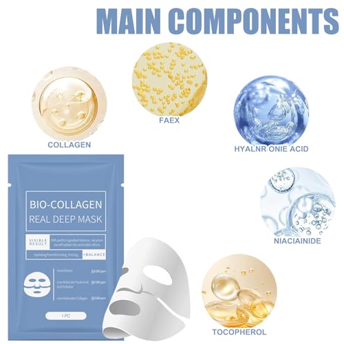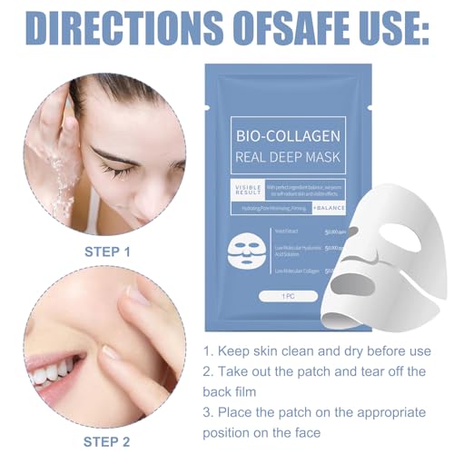 Collagen Face Mask Overnight,Collagen Real Deep Facial Cleansing Mask,Hydrating Overnight Mask Pure Collagen Films Face Mask (3pcs)