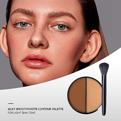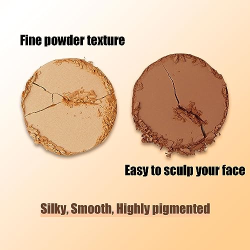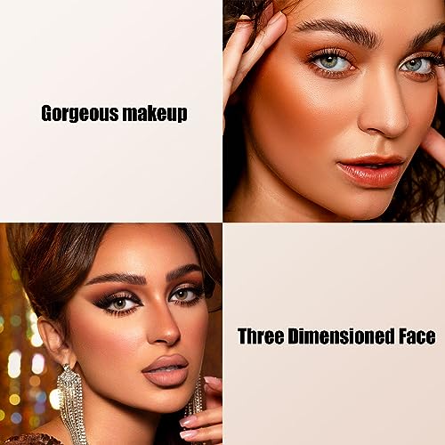 Contour Make up Powder Face Highlighter Matte Brighten Shadow with Brush Palette Kit, Beginners Natural Face Blusher Smooth Sculpting Bronzer for Medium Skin Tone