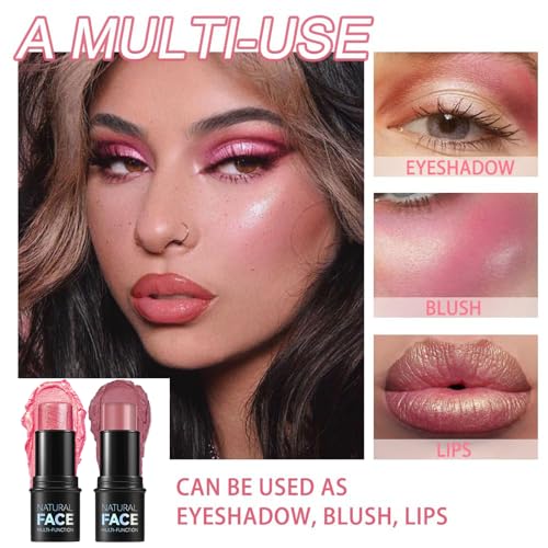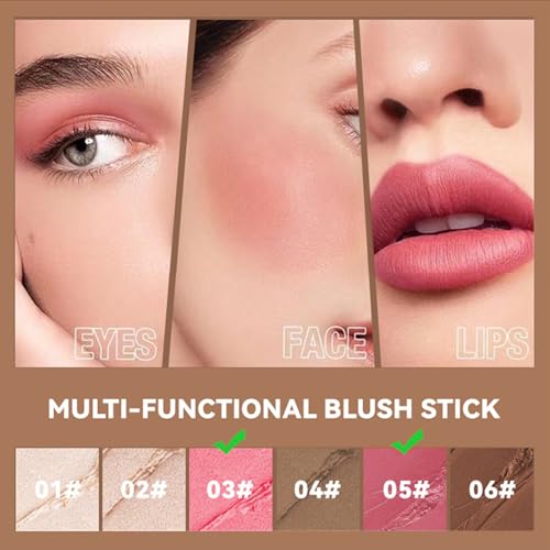 Cream Blush,3 in 1 Cheek Blush & Lip Tint & Eyeshadow Blush Stick,Blushers for Cheeks Make up,Lip Gloss Eyeshadow,Cream Contour Lip Stain Long Lasting Hydrating Formula Buildable High Pigment-01