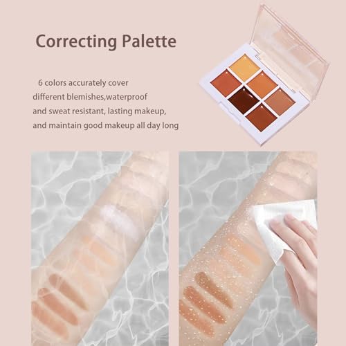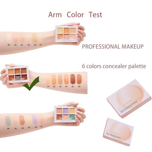 Cream Concealer Full Coverage Palette, 6 Colour Concealer Makeup Palette for Under Eye Concealer, Acne & Blemishes, Concealer Stick Waterproof Contour Concealer Palette