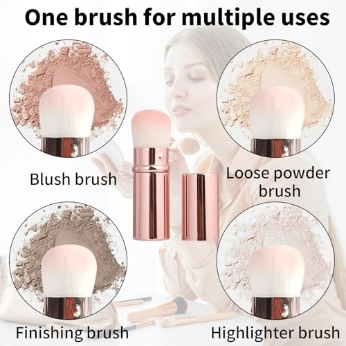 Face Make-up Brush,Pink Retractable Blush Brush,Retractable Blush Brush,Soft bristles,Loose Powder Brush,Makeup Brush for Blush,Powders,Make up,Foundation