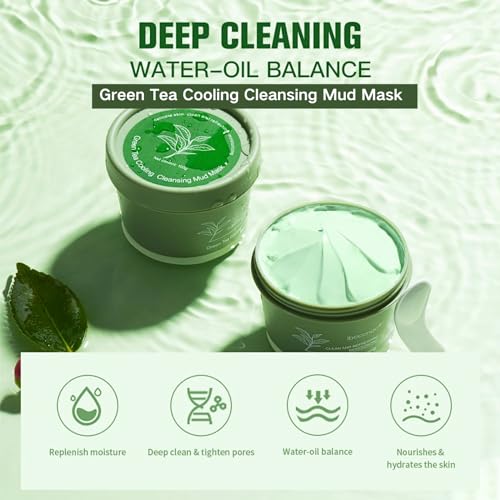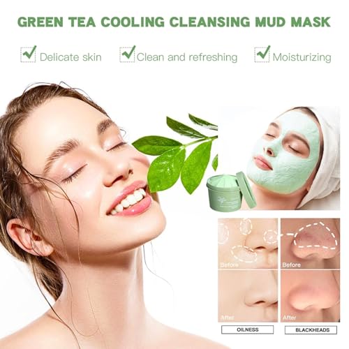 Green Tea Mask Mud Mask, Face Masks Skincare, Green Clay Mask – Spa Quality Pore Reducer for Acne & Oily Skin, Hydrating Deep Cleansing Cooling Face Mask, Vegan Natural Skin Care for Women, Men 100G