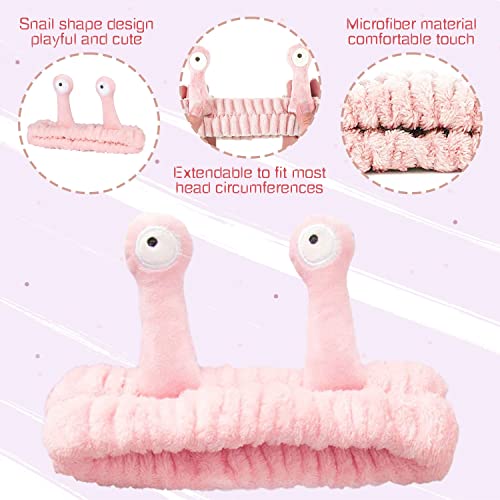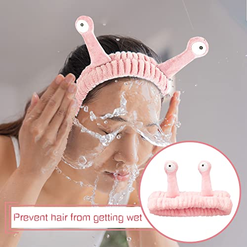 Headband for Washing Face, Spa Skincare Headband Palm and Snail Makeup Headbands Cute Face Wash Headband Elastic Headband for Washing Face Shower Sports Beauty Skincare (Pink)