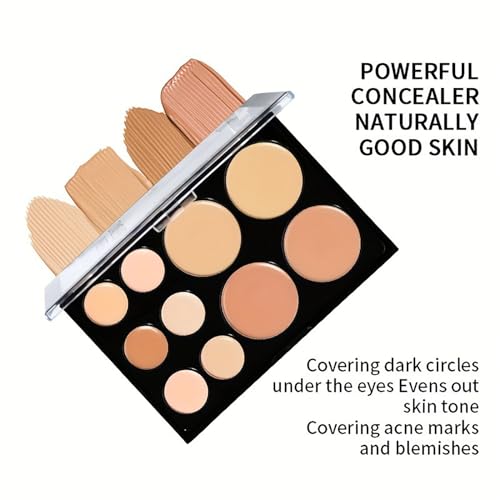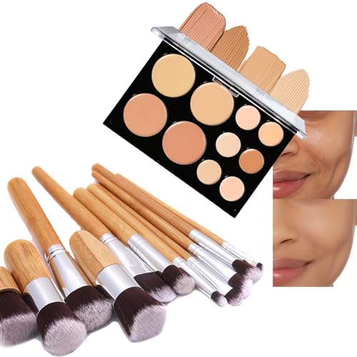 Holzsammlung 10 Colors Concealer Contour Palette, Contouring Foundation Concealer Cream, Custom Blend Corrects Cosmetics Waterproof Longlasting Matte Face Makeup with 11 Pcs Essential Face Brushes
