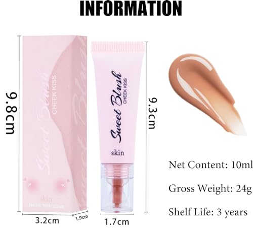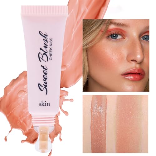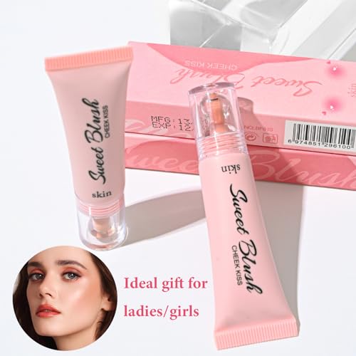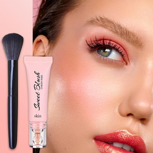 Liquid Blush Blusher, Soft Cream Blushes Blush, Nude Peach Blush Liquid for Cheeks Make Up, Soft Smooth Cream Blush, Weightless Smudge Proof Natural-Looking, Skin Tint Blush Makeup with Brush