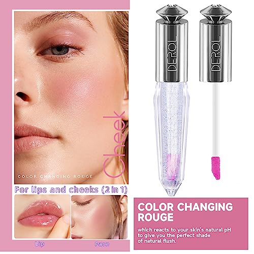 Liquid Blush, Color Changing Blushers for Cheeks and Lips Make Up, Glossy Shiny Finish Natural Nude Clear Blush oil for All Skin,Multi-purpose Cream