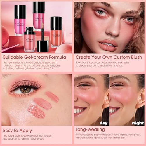 Liquid Blush Soft Cream Face Blush, Long-lasting Blendable Lightweight Moisturizing Beauty Makeup for For High-Pigment Colour,Natural Looking Color Smudge Proof Pink Liquid Cheek Blusher