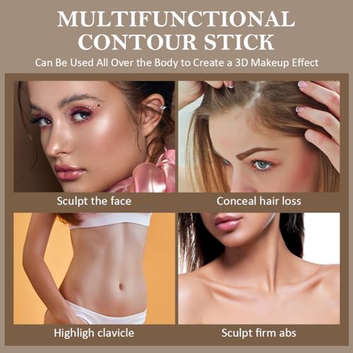 Highlight & Contour stick, Contouring Stick in Highlighter, Bronzer and Blusher, a non-greasy and waterproof contouring stick that effortlessly contours the face for a lightweight look