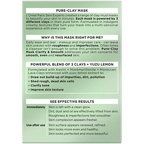 L’Oreal Paris Skin Care Pure Clay Mask. 1.7 Oz./48 g (Clarify & Smooth) variations include the ‘Detox and Brighten’ and ‘Exfoliate and Refine’ versions.