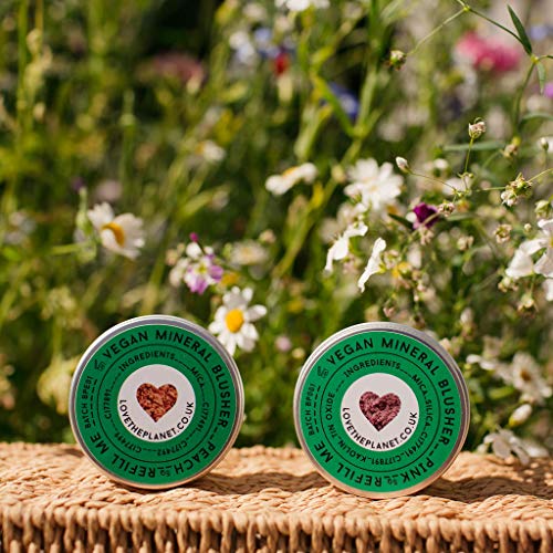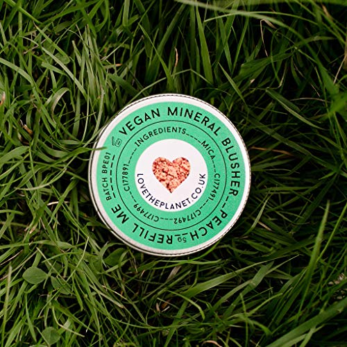 Love the Planet Vegan Mineral Blusher in Refillable Tin, Loose Powder Blush, Blushers for Cheeks Make Up, Matte Finish, Highly Pigmented, Shade Peach 5g