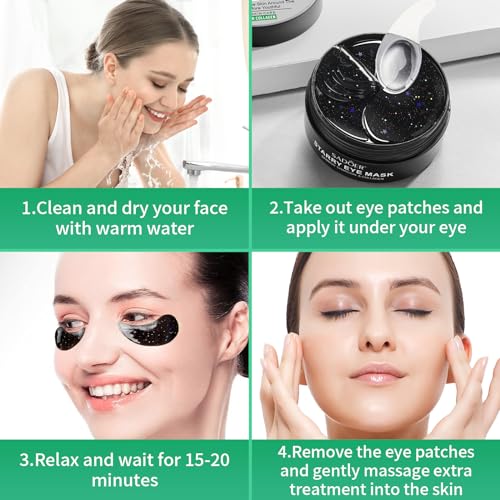 Lustwieta Under Eye Gel Patches – 30 Pairs Undereye Patches Collagen Hydrating Gel Pads for Women Men Skincare – Dark Circles – Puffy Eyes Bags – Nourish -Anti Wrinkle – Firm & Hydrate (black)