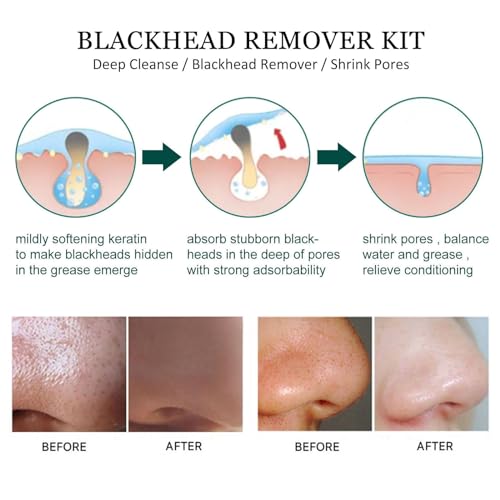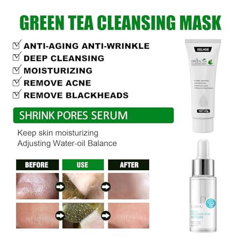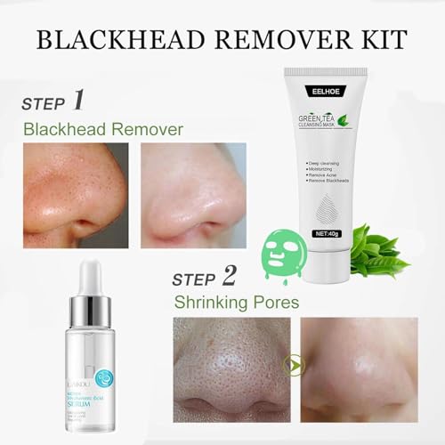 mercham Blackhead Peel Off Face Masks, 3-in-1 Green Tea Deep Cleanse Mask with Serum & Brush, Blackhead Remover Mask, Remove Acne, Shrink Pores, Vegan Face Peel Mask for Men & Women