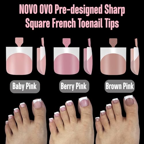 Achieve salon-perfect nails at home with NOVO OVO French Tip Toe Nail Tips in Baby Pink. These pre-designed, sharp square, soft gel false toenails come with pre-applied primer and base coat, offering full cover acrylic in 15 versatile sizes. Ideal for DIY enthusiasts.