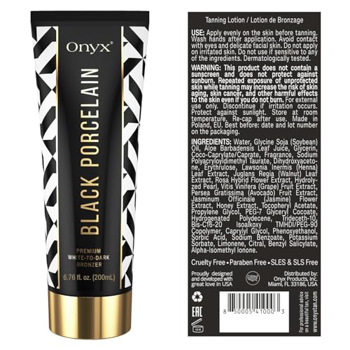 Onyx Black Porcelain Bronzer Sunbed Cream – White-To-Dark Formula for No-Stains & No-Streaks Effect – Gradual Tanning Lotion for Dark Tan Results – Anti-Aging & Anti-Wrinkle