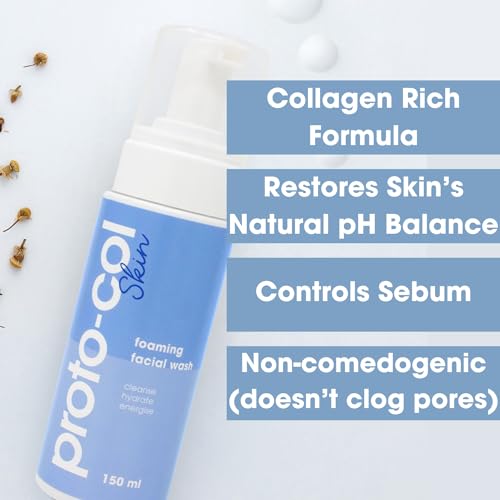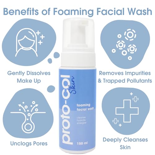 Proto-col – Foaming Face Wash, Collagen Technology + Hyaluronic Acid + Powerful Vitamins and Minerals, Easily Removes Makeup, Hydrates and Rejuvenates Skin (150ml)