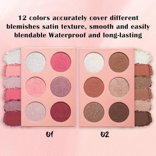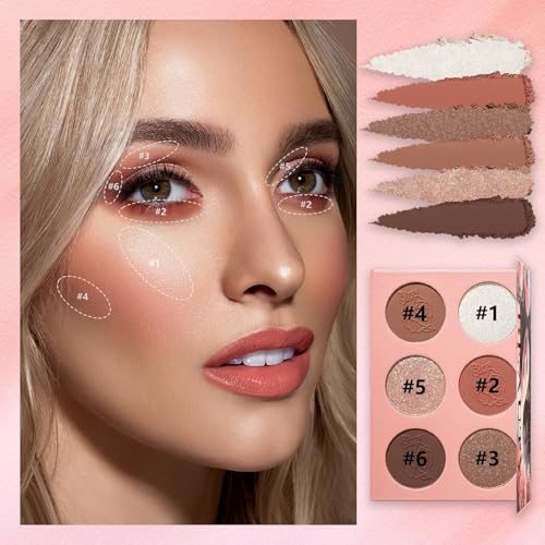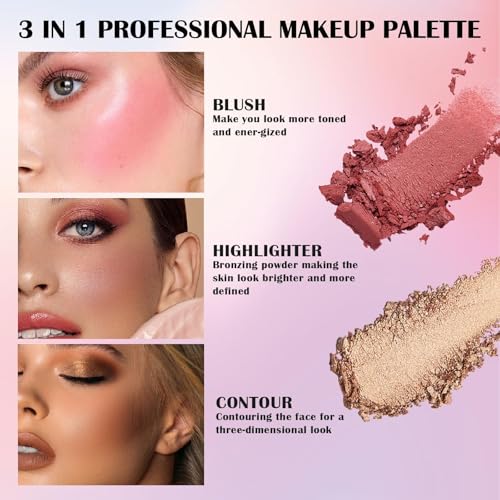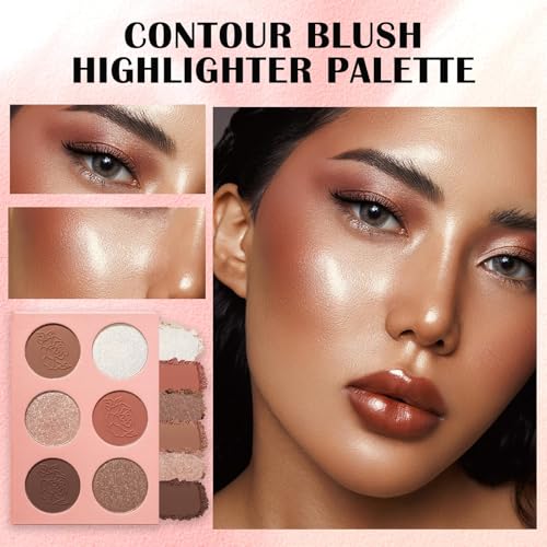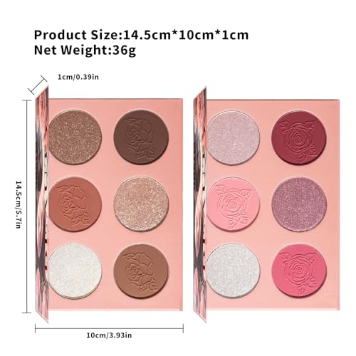 Prreal Contour Blush Highlighter Palette, 6 Colors Blush Powder Palette, Highlighter Powder Palette, Natural Shimmer Highlighter Blush Palette Facial Bronzers, Long-Lasting 3 in 1 Makeup Palette,#02