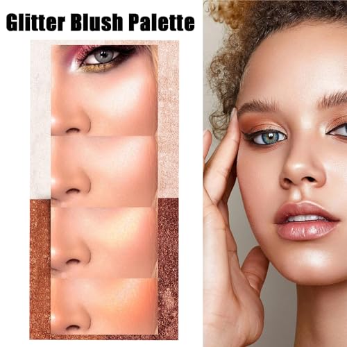 Shimmer Blushers For Cheeks Make Up, 4 Colors Long-Lasting Blush Palette, 3 In 1 Blusher Contouring Highlighting Natural Powder Blush for Women