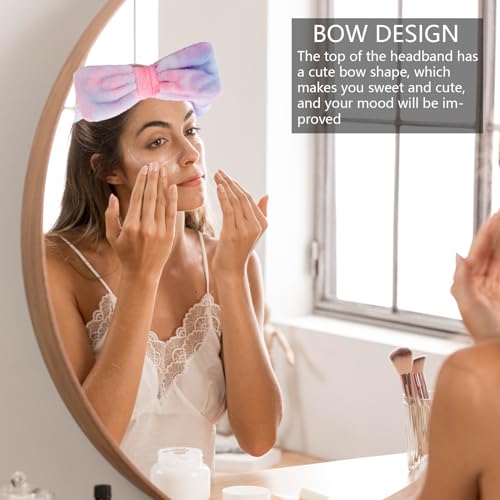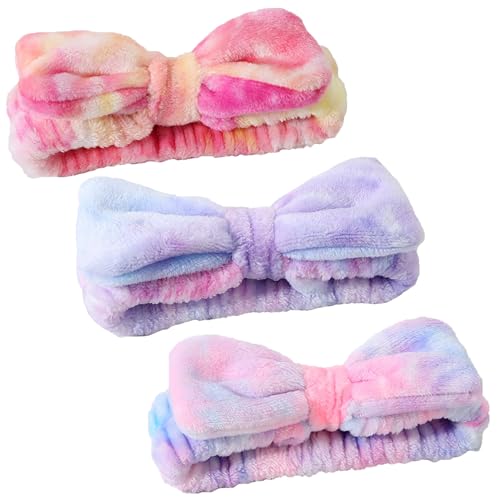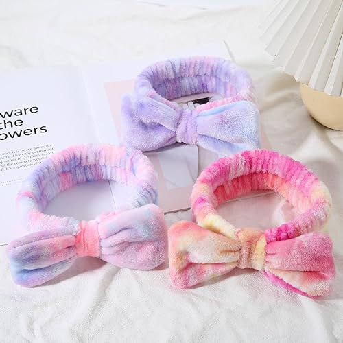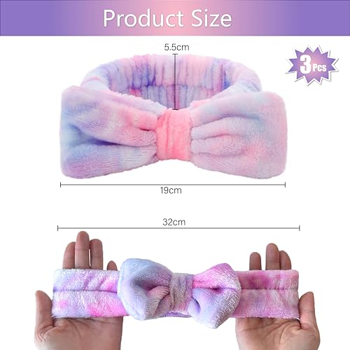 spa headband, three-piece headband for washing face, face wash headband, makeup headband, skincare headband face wash bow headband (Gradient Purple,Pink and White)