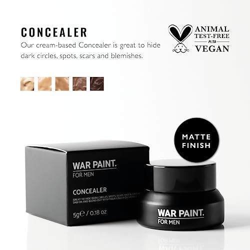 War Paint For Men Cream Concealer – Infused With Tea Tree Oil for Healthy Looking Skin – Vegan Friendly & Cruelty-Free – Blendable – Natural Looking Makeup For Men – Dark Shade – 5g