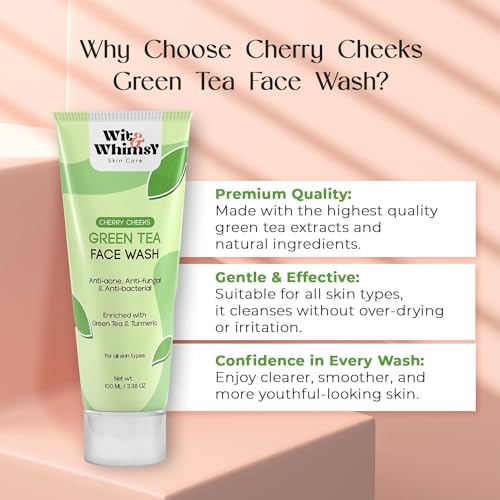 Wit & Whimsy Cherry Cheeks Green Tea Face Wash Premium Ayurvedic Formulation Enriched With Green Tea & Turmeric Extract For All Skin Type – 100ML (3.38 Oz)