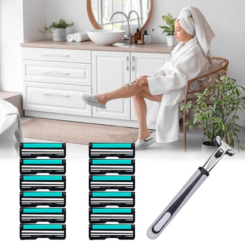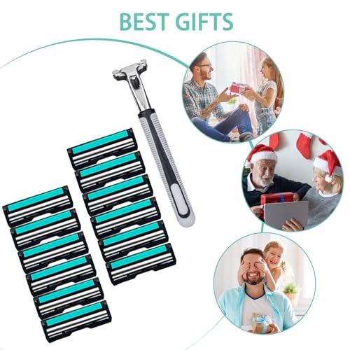 12 Pack of Mens Three Blade Razor Set,Mens Razors for Shaving, Razors for Men Blades with Comfort Lubricating Strips & Contour,Movable Replaceable Heads Gift for Men Father Boys(with Razor Handle)