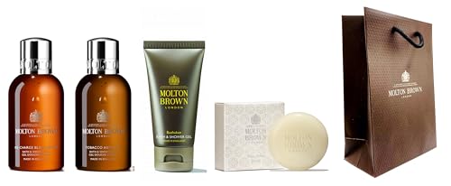 The Molton Brown Mens Ramsey 5 Piece Luxury Bathing Gift Set is the ultimate grooming indulgence. This sophisticated set includes a variety of high-quality products to elevate any man’s bathing routine. Inside this luxurious collection, you’ll find premium body wash, shampoo, conditioner, and skin-nourishing lotion, all crafted with the finest ingredients and infused with Molton Brown’s signature fragrances.